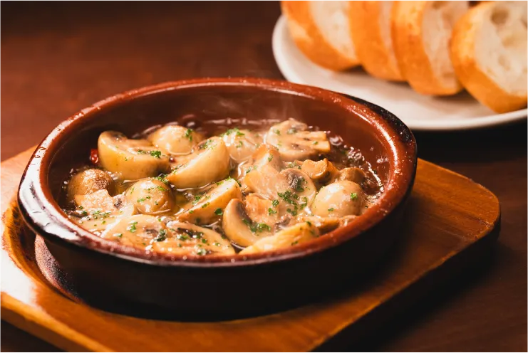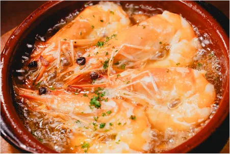 地鶏のレモンオイル焼きマッシュルームのセコビア風イカ肝のアヒージョ海老のニンニクオイル焼き季節のアヒージョ